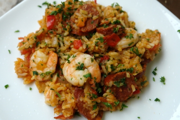 2 cucharadas de aceite de oliva 1 cebolla blanca o cebolla perla, cortada en cubitos 2 pimientos (de cualquier color), cortados en cubitos 2 tomates tipo roma, pelados y picados en cubitos 6 dientes de ajo, machacados 2 tazas de arroz de grano...